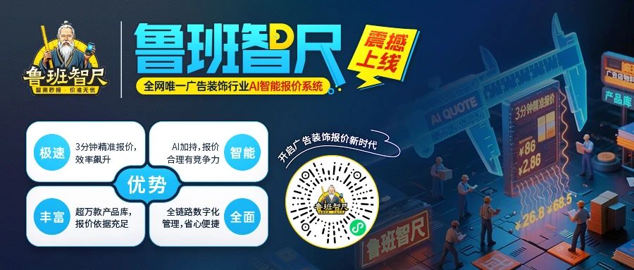 如果您也想像快印客加盟店一樣,在門頭燈箱報(bào)價(jià)上實(shí)現(xiàn)降本增效,提升專業(yè)形象,不妨試試魯班智尺。讓這款報(bào)價(jià)神器成為您廣告事業(yè)的得力助手,助您輕松拿下每一個(gè)訂單!